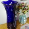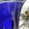 Dekoratív kék üveg váza amelynek felső részén ovális lyukak vannak amik igazán egyedivé teszik. Kitűnő ajándék lehetőség.