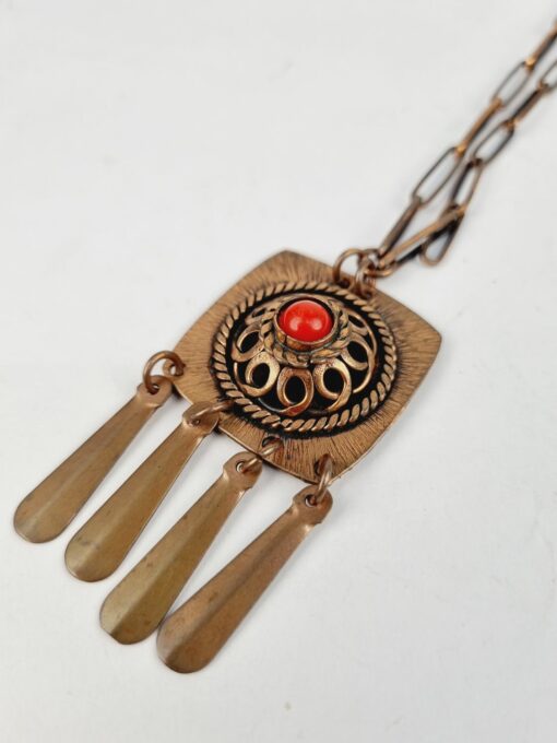 Keleties stílusú Vintage design nyaklánc piros kővel