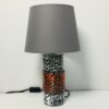 Mid-century asztali lámpa piros fekete mázas kerámiával és új szürke színű lámpabúrával, az 1970-es évekből. Felújított, újrakábelezett, hibátlan állapotban.