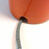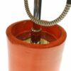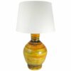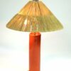 Bohém stílusú asztali lámpa az 1970-es évekből, narancssárga kerámia lámpatesttel és rattan búrával.