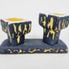 Király Károly kerámikus alkotása az 1960-as évekből.Fekete zsugormázsas sárga csurgatott dekorral. Jelzett. Méretei:11x21x7 cm Korának megfelelő állapotú.