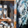 Kéri László: Kompozició .Olaj/vászon. Jelzés nélkül. 1980-as évek. Gomolygó, dinamikus, erőteljes színvilágú csendéletszerű festmény. Gazdag tónuskonsztraktok jellemzik. Méretei: 74 x 80 x 1 cm.