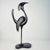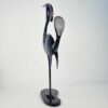 Kócsag figura festett fémből, mely Kiss Sándor, 1960-as években született, egyedi alkotása. Elegáns, finom vonalvezetésű iparművészeti alkotás. Korának megfelelő állapotú. Méretei: 47 x 10 x 18 cm.