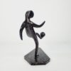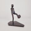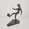 Bronzírozott fémből készült labdázó kisfiú az 1960-as évekből. Kiss Sándor iparművész egyedi alkotása. Alaktanilag egyszerű letisztult formavilág jellemzi.