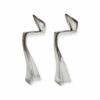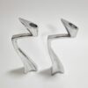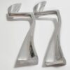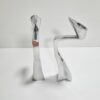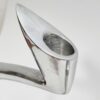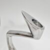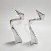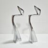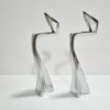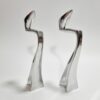 Space age stílusú páros gyertyatartó az 1980-as évekből. Fémből készült egyéni iparművészeti alkotás. Izgalmas formavilága,anyaga és stílusa modernista atmoszférában mutat a legjobban. Korának megfelelő állapotú. Méretei: 24 x 9 x 5 cm. Az alján korabeli raglap található.