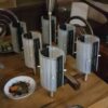 Teak fa és üveg hatkarú csillár, 1970-es évek