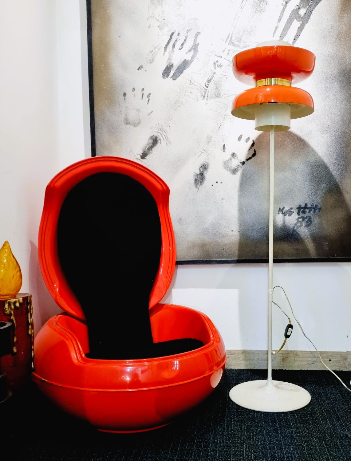 Hornicsek László ipari formatervező által tervezett állólámpa az 1970-es évekből. Funkcionalista, modern darab.