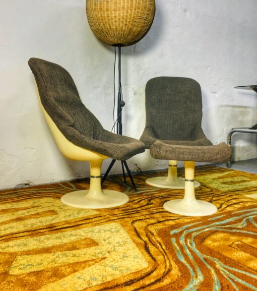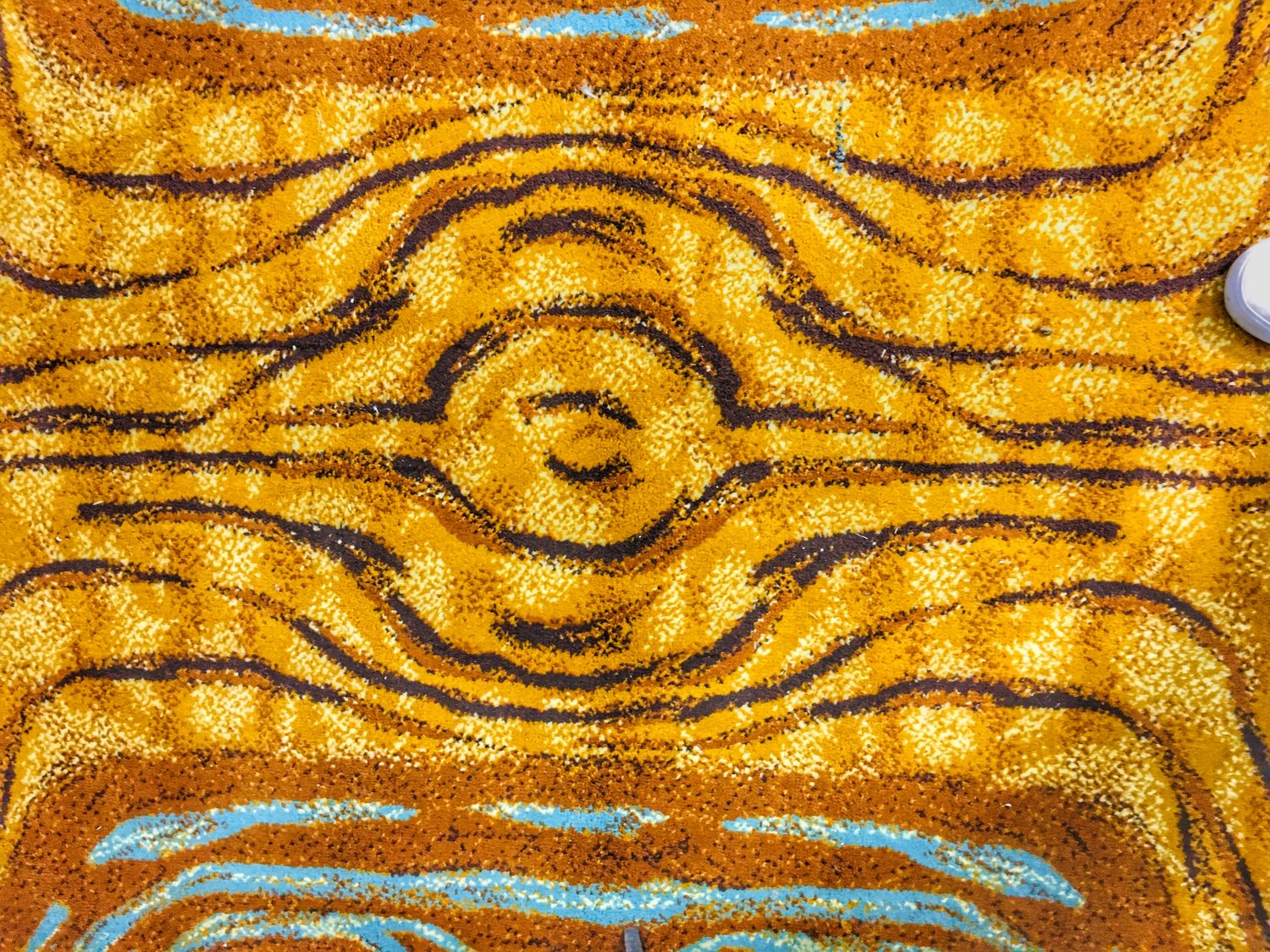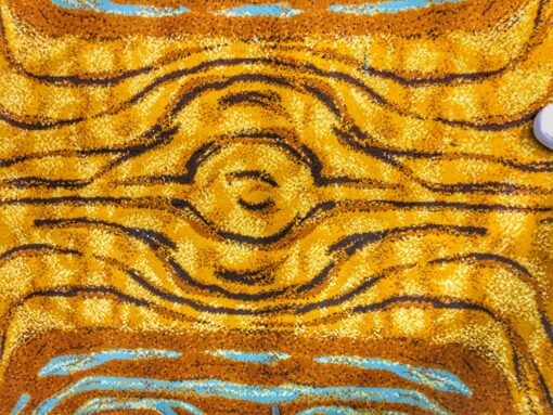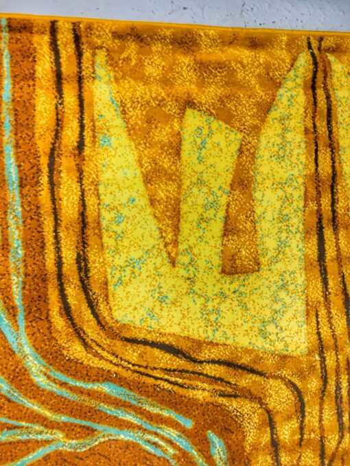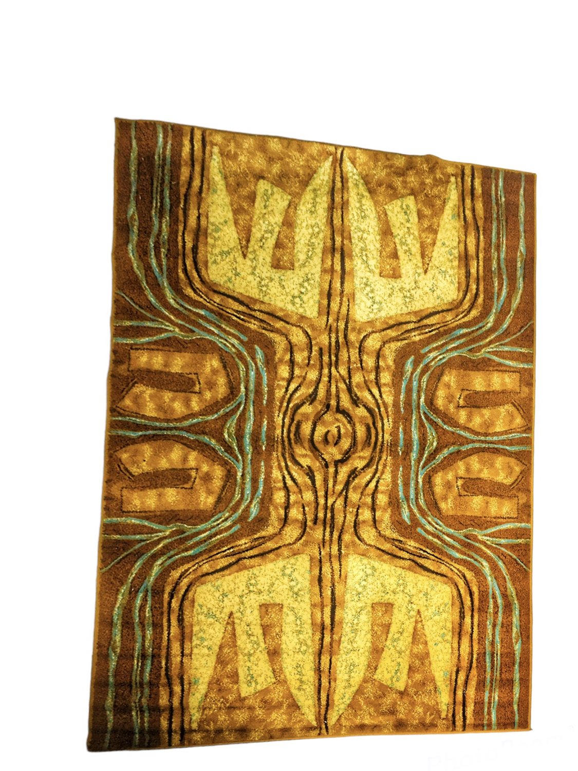 Mid-century modern barna, sárga, LATEX Kozó Erzsébet textil szőnyeg, 1960’s/70’s