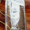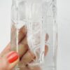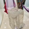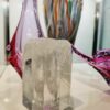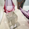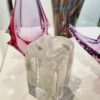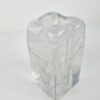Mid-century Modern áttetsző design üveg váza, kisméretű stílizált olvadó jögtömb alakú. Kiváló, karcmentes állapot.