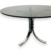 Ez a midcentury modern stílusú dohányzóasztal elegáns króm szerkezettel és 90×90 cm-es kerek füstüveg lappal rendelkezik, amely letisztult, mégis figyelemfelkeltő megjelenést biztosít. A króm alap kiemeli a bútordarab modern, minimalista vonalvezetését, miközben biztosítja annak stabilitását és tartósságát. Az asztal üveglapja áttetsző füstüvegből készült, ami könnyed, légies hatást kelt, és tökéletesen illik a midcentury modern dizájn letisztult eleganciájához. Kerek formája és szimmetrikus elrendezése tökéletesen illeszkedik bármilyen modern nappali vagy loft stílusú térbe, miközben funkcionalitását is megőrzi.
