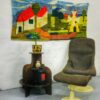 Vastag szövésű faliszőnyeg, festmény hatású városkép mintával, élénk színekben. Tiszta, szakadásmentes állapotban.