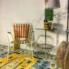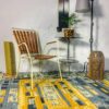 1960-as években készült gépi csomózású szőnyeg élénk kék és sárga színekben, nagyszerű dekoráció modern és vintage terekhez egyaránt, szép, foltmentes állapot.