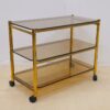 Vintage réz kerekes lerakóasztal füstüveg polcokkal, olasz design, 1960-as évek. Karcmentes, kiváló állapot.