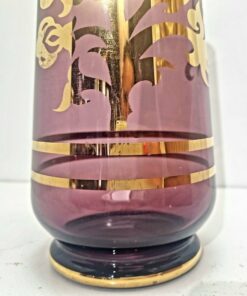 Kisméretű, áttetsző üveg virágváza. Oldalán spirál alakban futó domború, zöld minta díszíti.