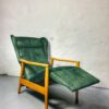Mid Century Vintage Zöld bársony borítású karfás szék beépített lábtartóval, 1960’s