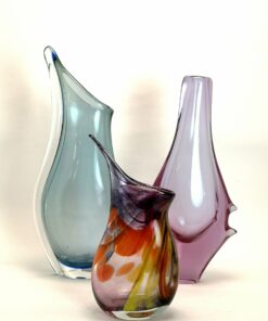 Nagyméretű áttetsző, élénk zöldes árnyalalatú váza, öblös szájú kialakítással. Hibátlan állapotú.