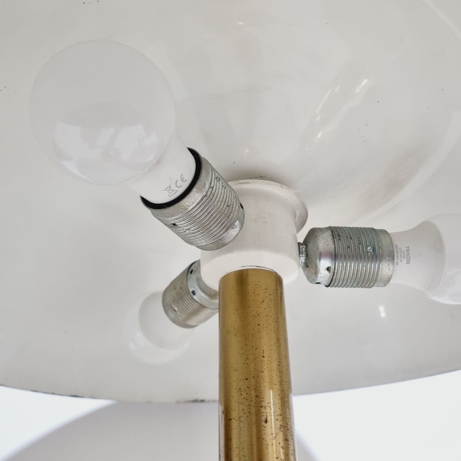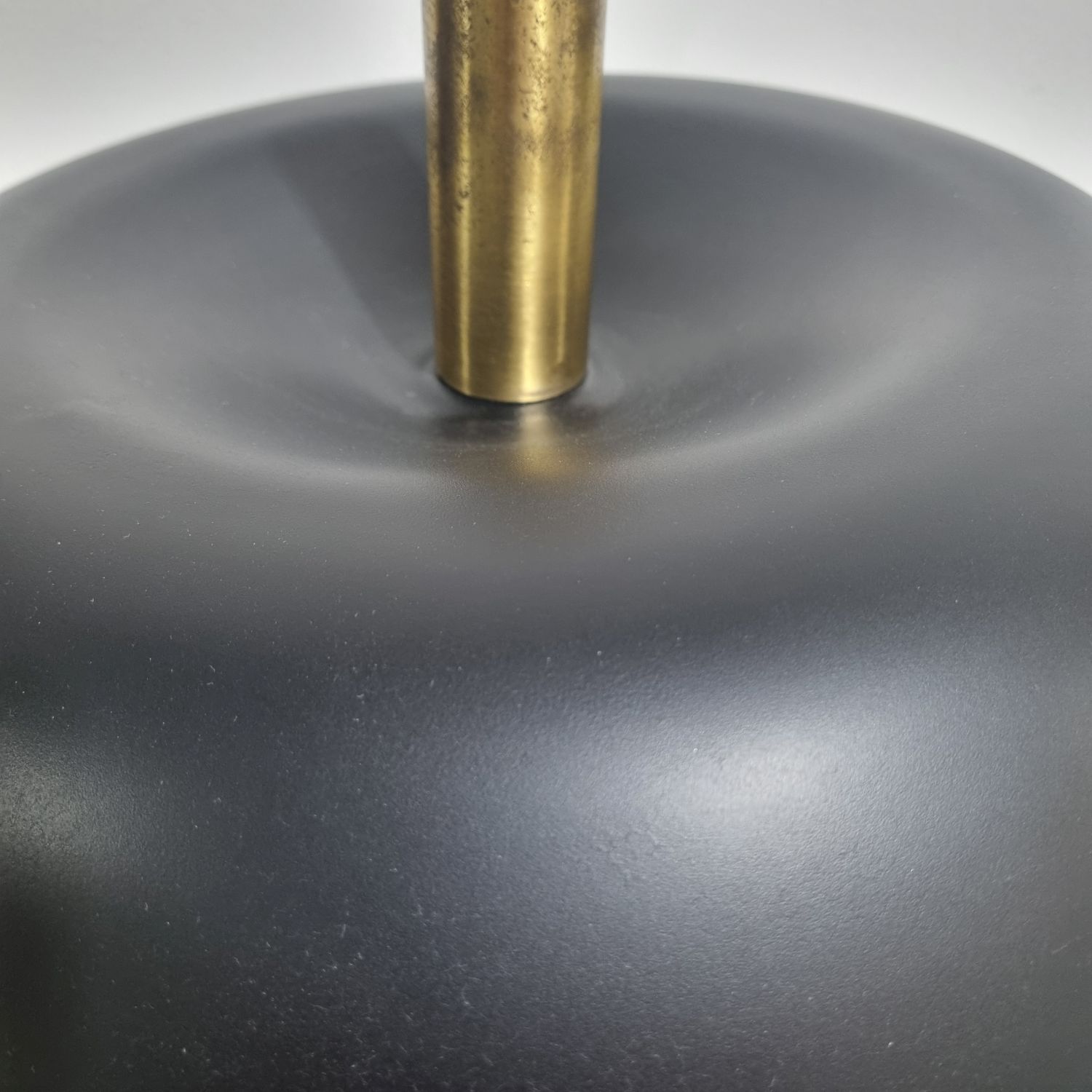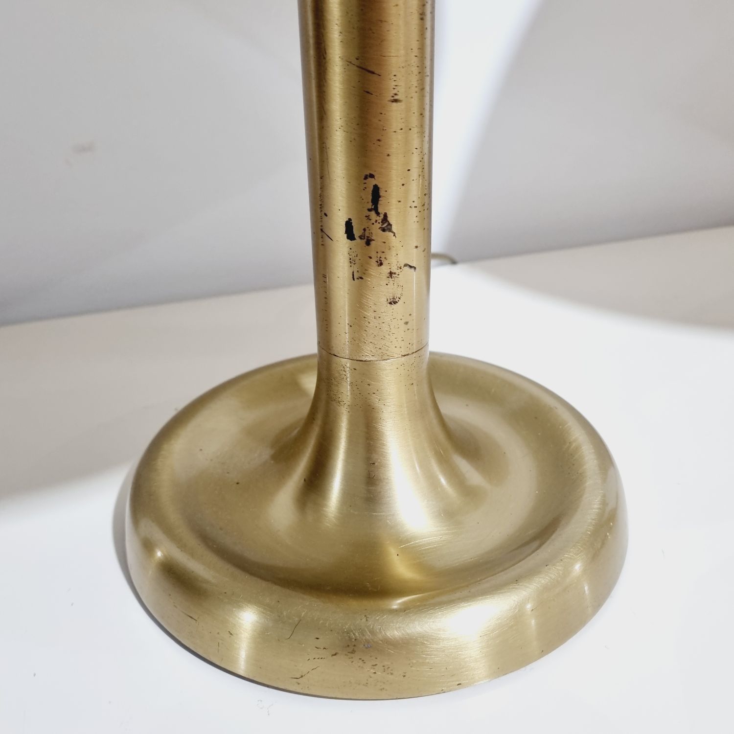 Vintage midcentury modern design gomba alakú asztali lámpa, 7377-es modell, Egon Hillebrand. Németországban készült az 1970-es években. Sárgaréz talp, a búra matt fekete fém. A lámpa pár működőképes állapotban van, elektronikusan felújítva. Egyik darab fényes felületű a másik matt színű réz. Méretek: 55cm magas x 45cm x 45cm.
