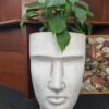 Monumentális, kőből készült kerti design virágtartó az 1970-es évekből. Dekoratív férfi fejet ábrázoló, kihelyezhető kaspó. Vízszigetelő anyaggal van bevonva, ezért kültéri és beltéri dekorációként is ideális. Állapota enyhén kopott. Méretei: 58x39x39 cm, súlya 20 kg.