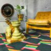Modern vastag szövésű szőnyeg az 1980-as évekből. Rendkívül jó lakásdekoráció, színes alapon fekete kockákkal. Szép tiszta állapotban, kopás vagy szakadás nélkül elérhető.