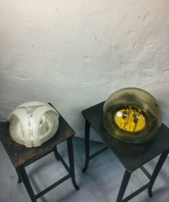 Kellemes szórt fényt árasztó indusztriális jellegű, stabil fém vázas állólámpa. Elektromos állapota ellenőrzött, működőképes.