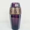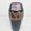 Csiszolt különleges ametiszt színű art deco Moser üveg váza körbefutó arany applikációs rátéttel az 1930-as évekből.