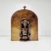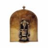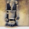 Muharos Lajos alkotása nem nélkülözi a humort. Sárkányölő Szent György c. alkotása az 1970-es években készült, felhasználva a klasszikus anyagot a bronzot. Magas szintű szakmai gazdagságot, bájt, és derűt áraszt a mű. Korának megfelelő állapotú. Méretei: 16x12x4cm