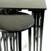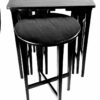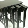 Ez az 5 részes szett egy téglalap alakú nagy asztalból áll, négy azonos méretű, kinyitható kis asztallal. Nagyon ritka, jó állapotú – valószínűleg kávézókban vagy éttermekben használták. A tölgyfa szerkezet feketére festett és lakkozott, alul az eredeti Mundus papírbélyegző található.