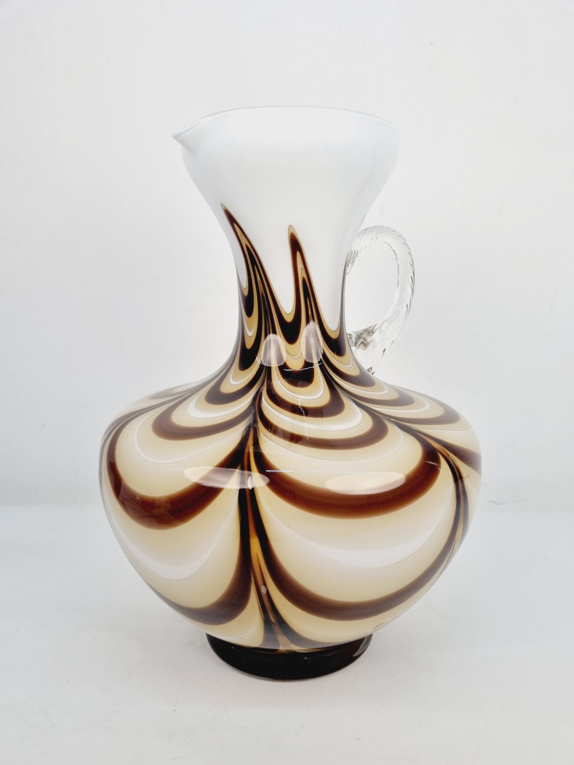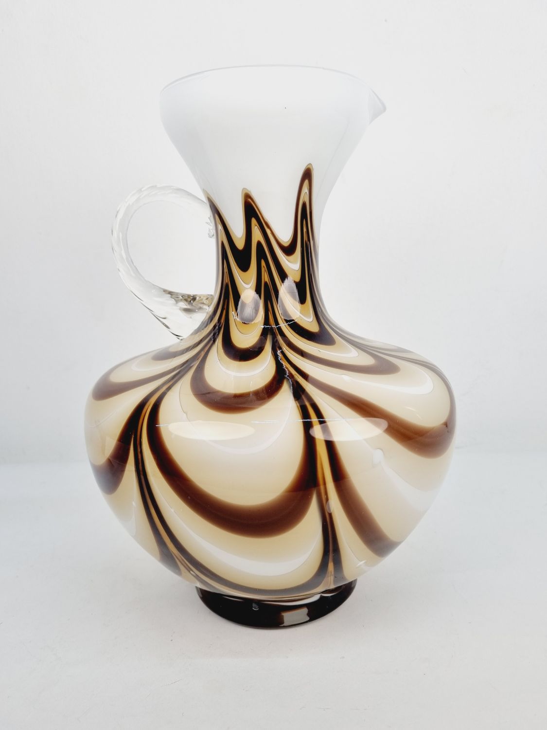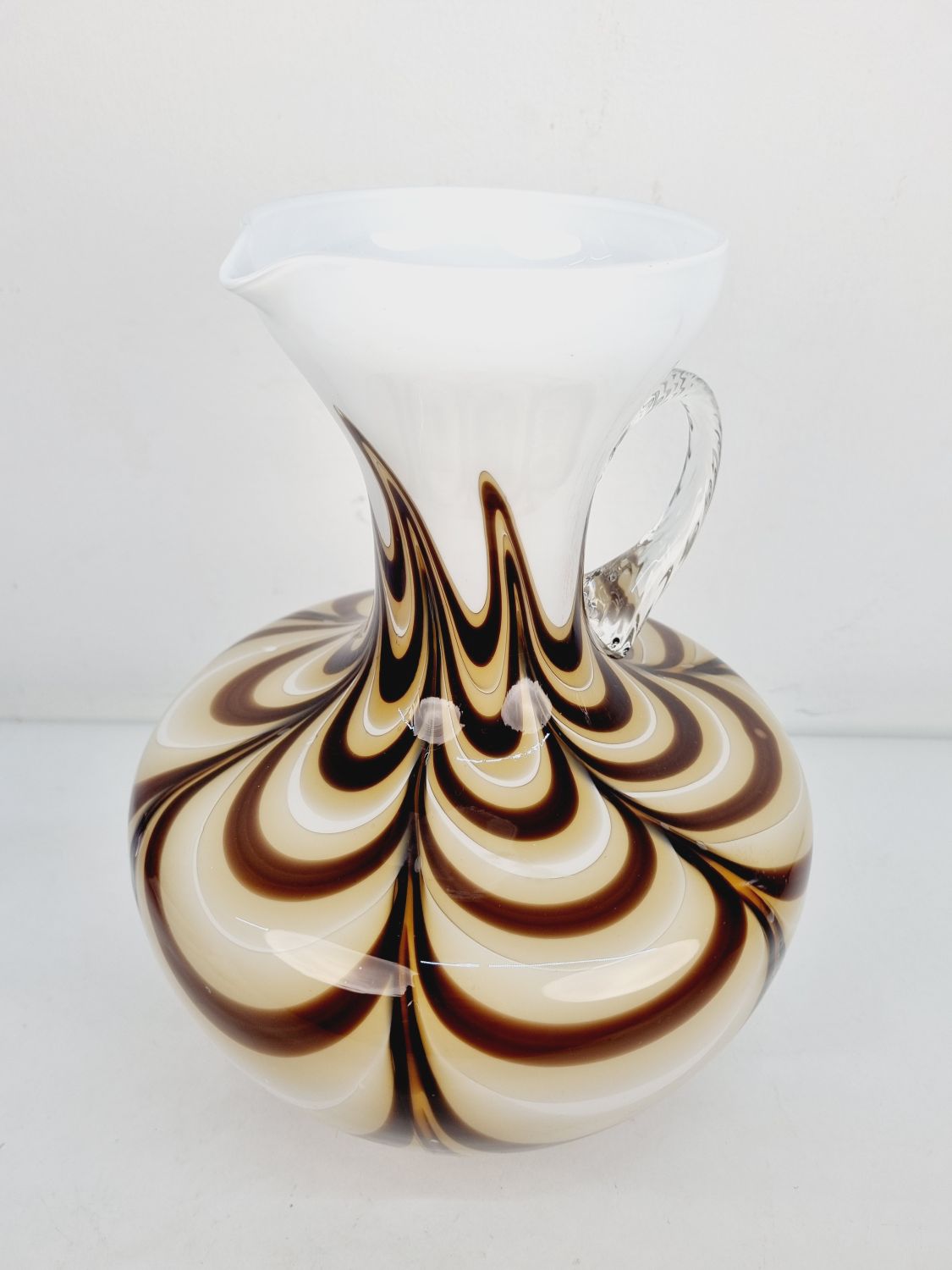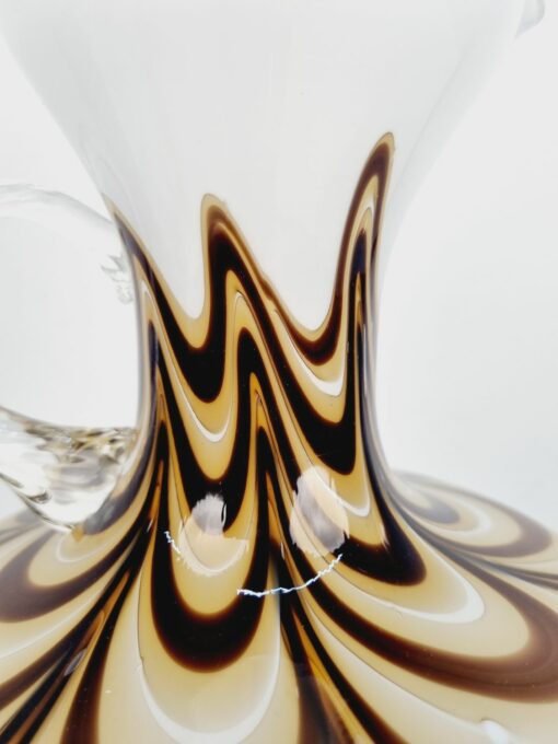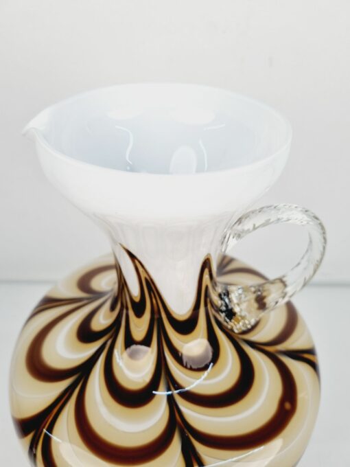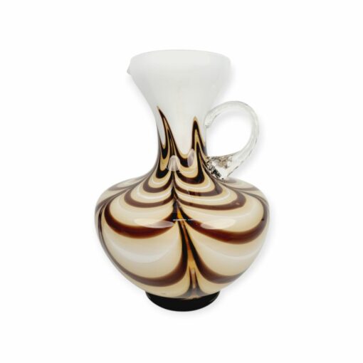 Dekoratív, fehér és kávébarna színű, hibátlan művészüveg kiöntő