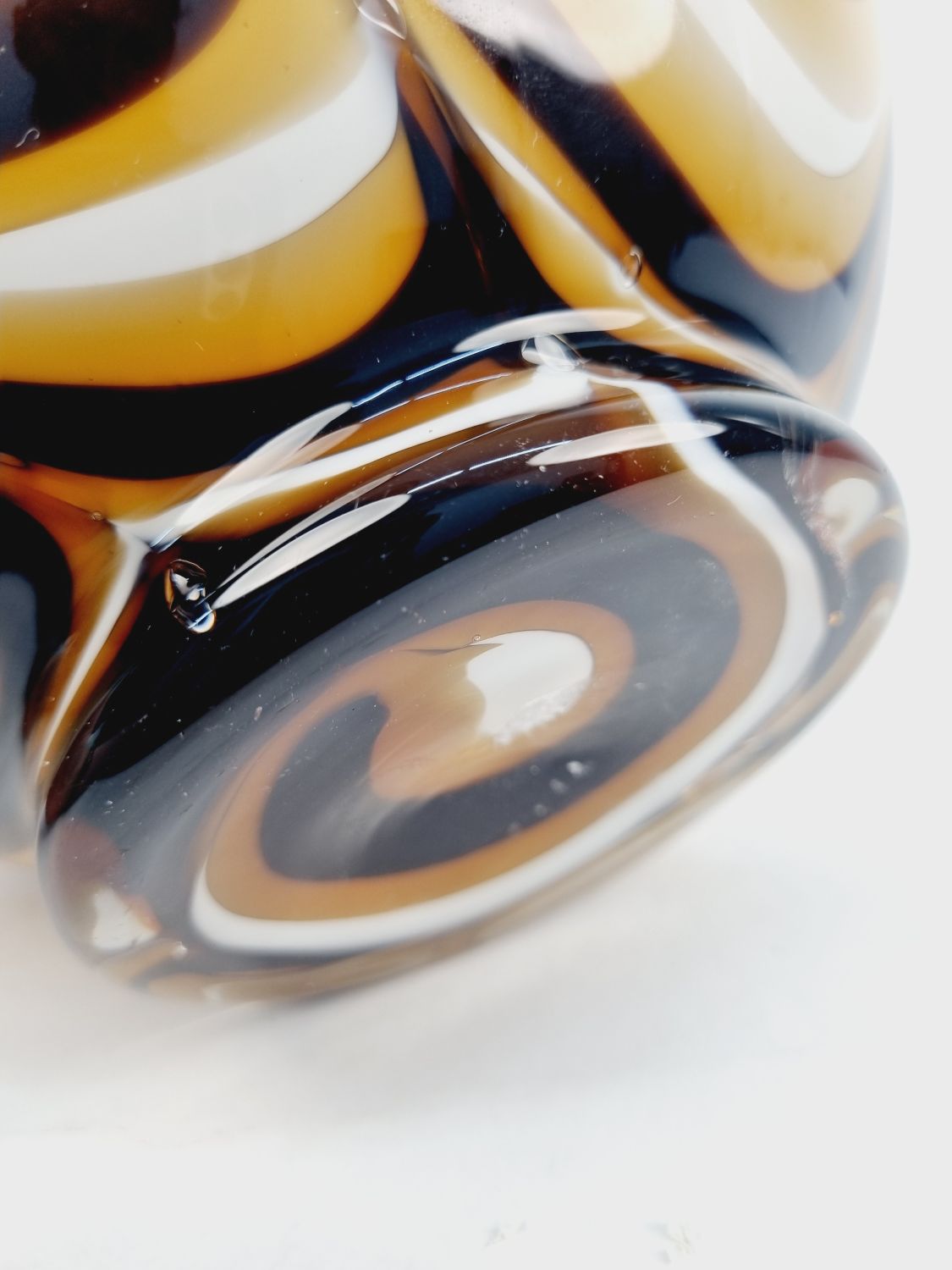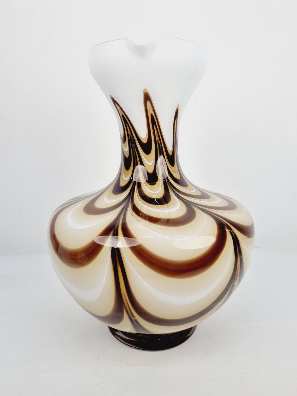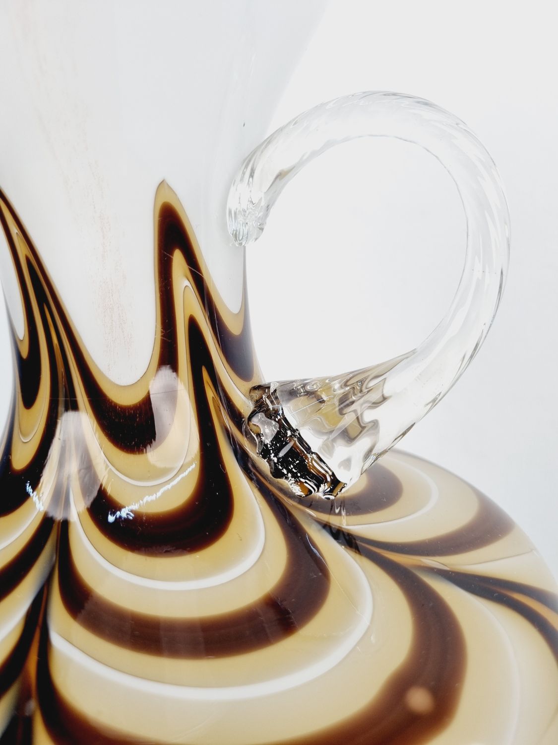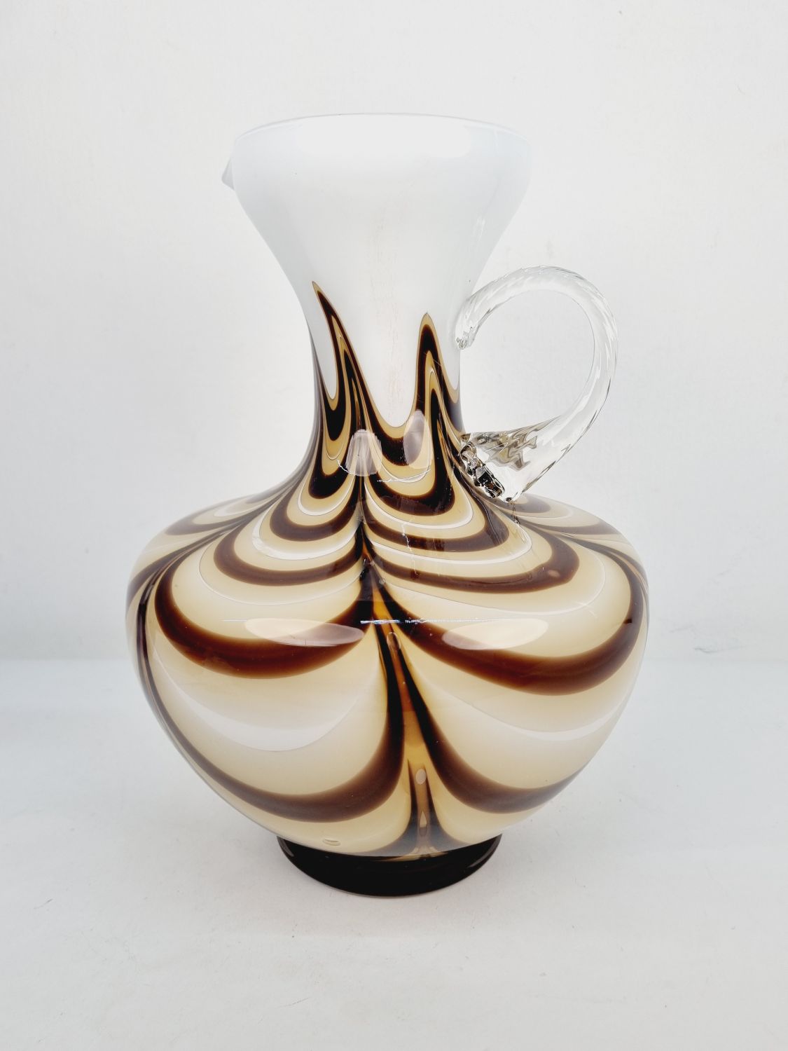 Dekoratív, fehér és kávébarna színű, hibátlan művészüveg kiöntő