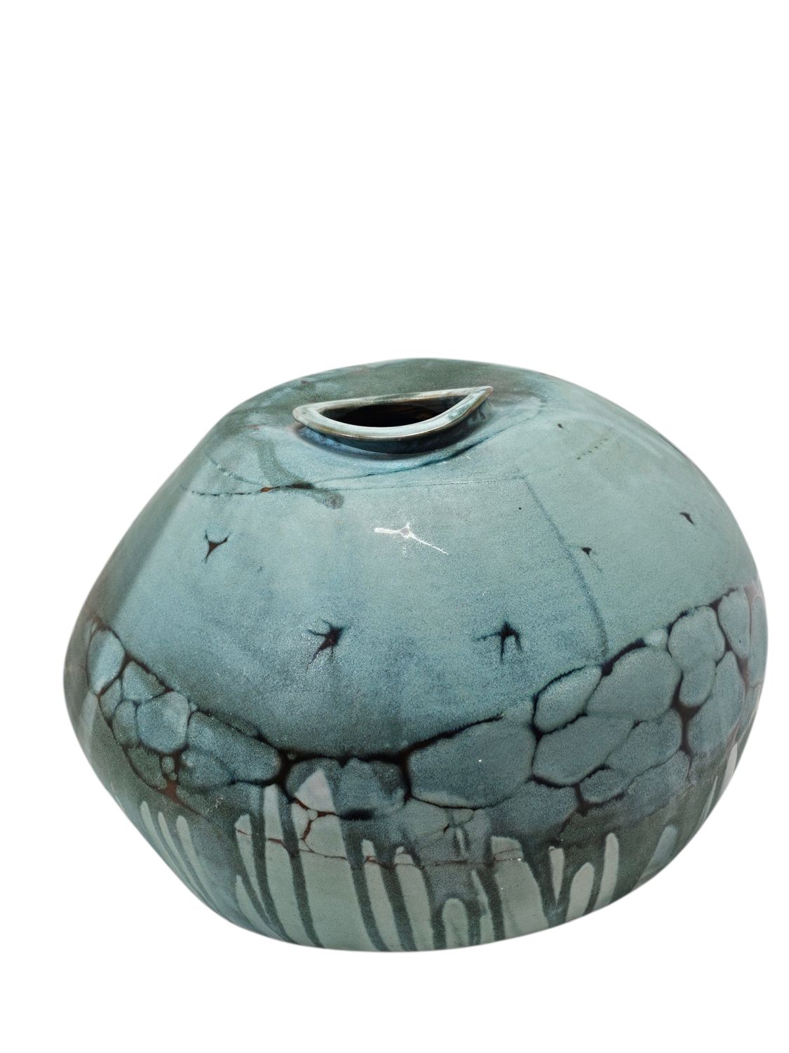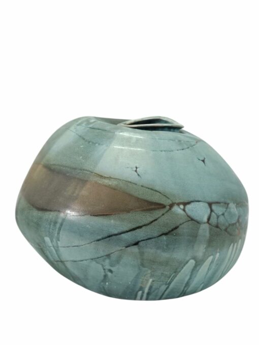 Óriás méretű türkiz zöld kerámia váza jelzett igen ritka hibátlan állapotú különleges lakásdekoráció. Jelzett