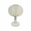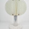 Különleges formavilágú, modern stílusú vintage asztali lámpa az 1970-es évekből. Üveg lapjainak köszönhetően dekoratív hangulatfényt biztosít.