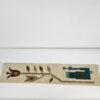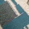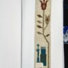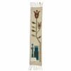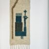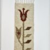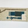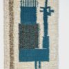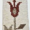 XX. századi magyar iparművész kézi szövésű gyapjú falikárpit, geometrikus stilizált madár és tulipán mintával díszítve. Ez a különleges modern hangulatú vintage szőttes Németh Éva textilművész alkotása, melyen fellehetők skandináv népművészet ihlette stílusjegyek.