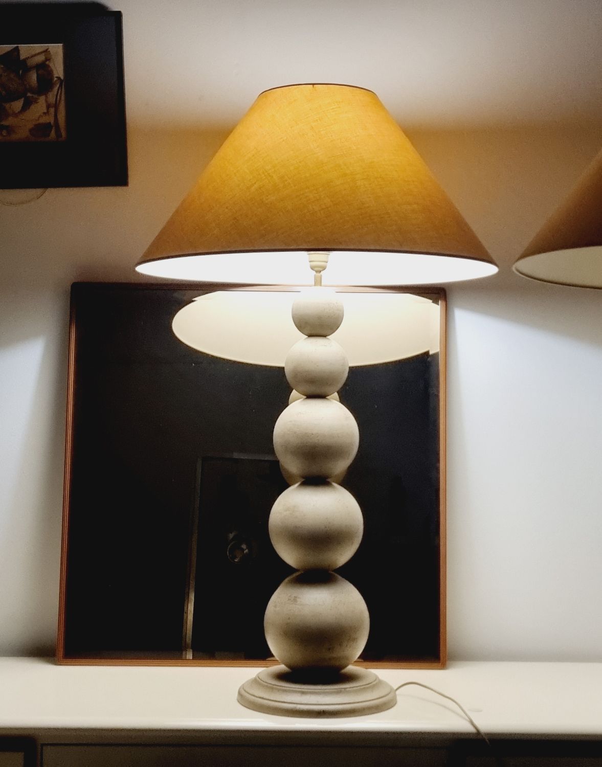 Asztali lámpa /párban/ az 1970-es évek dizájnja. Optimális hangulatfényt áraszt, megfelelő kiegészítője a nappalinak hálószobának vagy irodának. Méretei: 118 x 30 x 30 cm. Energiatakarékos égővel is használható, müködőképes .