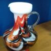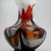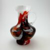 Muranoi Olasz váza, az 1970-es évekből. Tejüveg alapon bordó és piros hullámokkal dekorált opálüveg, átlátszó csavart füllel. Kézzel készült, hibátlan állapotban elérhető. “Opaline Florance” certifikációs matricával.