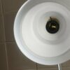 Mid-century lámpa matt fehér opálüveg lámpabúrával és sárgaréz foglalattal. Működőképes, szép állapotban elérhető.
