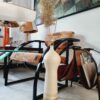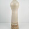 Zsűrizett, iparművész padlóváza az 1980-as évekből. Az alján korabeli raglap. Finom pasztell színe, különleges formavilága elegáns megjelenést biztosít egy skandináv tipusú enteriörben. Méretei:53x16x16 acm