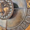 Papp Zoltán: Zodiákus domborműves relief sárgarézből. Kora az 1970-es évekre tehető. Csodálatosan kidolgozott, részletgazdag csillagképjegyek a kördekorban, közepén a nap. Korának megfelelő állapotú. Méretei: 31 x 31 x 8 cm.
