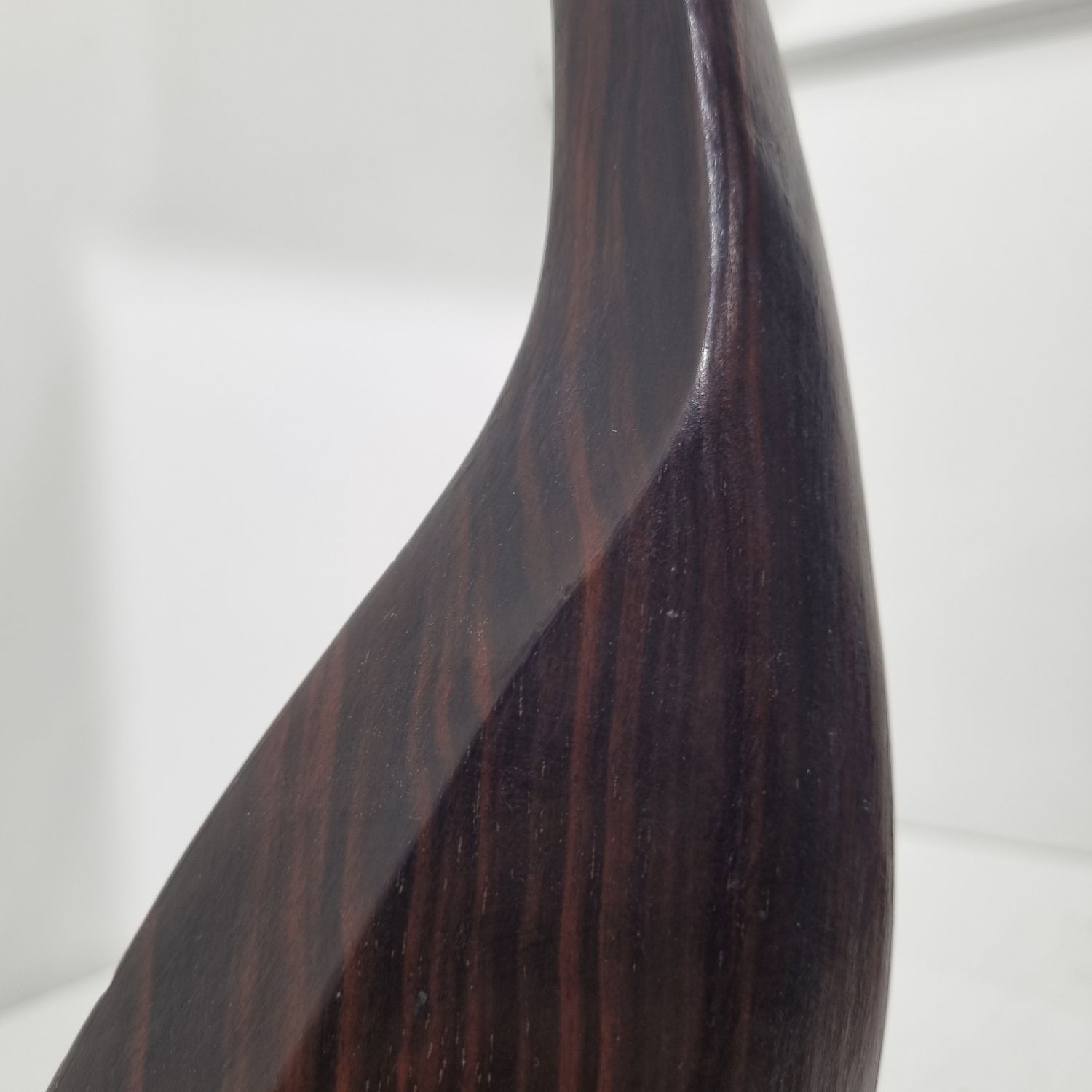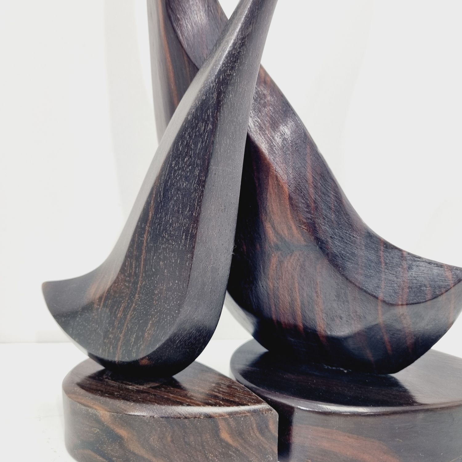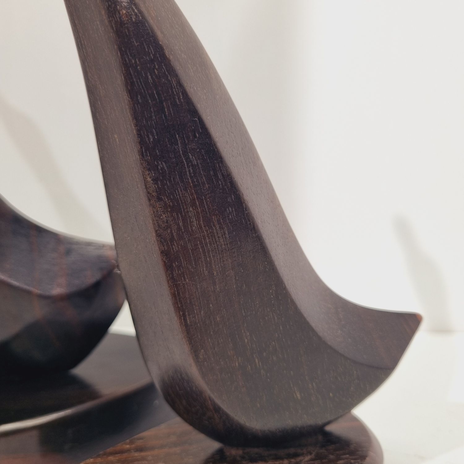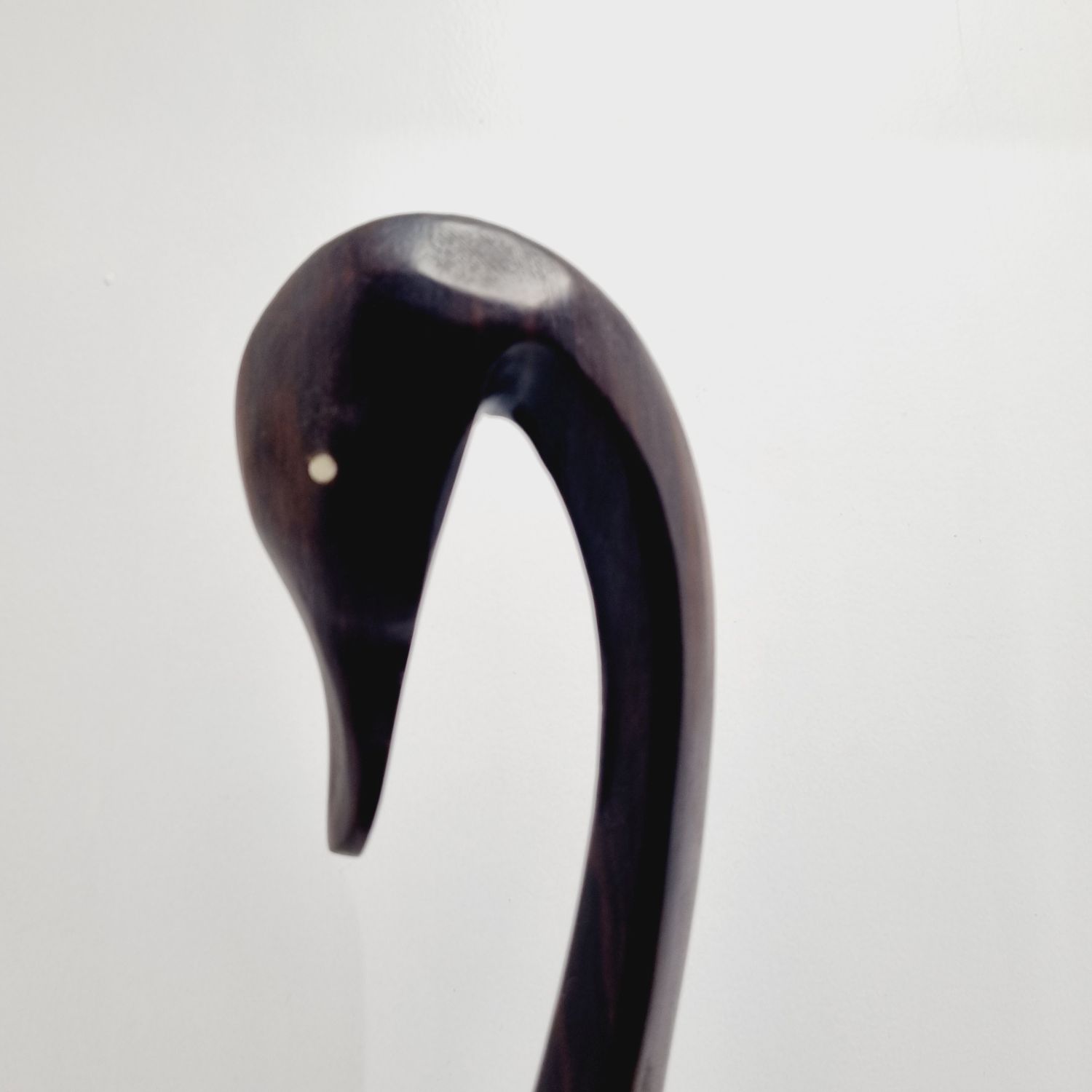 Páros hattyú figura, amely fából készült az 1980-as években. Feltehetőleg afrika eredetű kézzel készült alkotás, amely bájával kecsességével elegáns dísze rusztikus stílusú otthonunknak. Jó állapotú. Méretei: 35 x 25 x 10 cm.