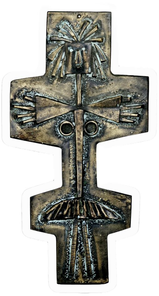 Percz János (1920-2000): Kócos lány, falidísz, bronzírozott réz