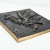 Percz János kisplasztika, méretben hozzá gyártott diófa állvánnyal
