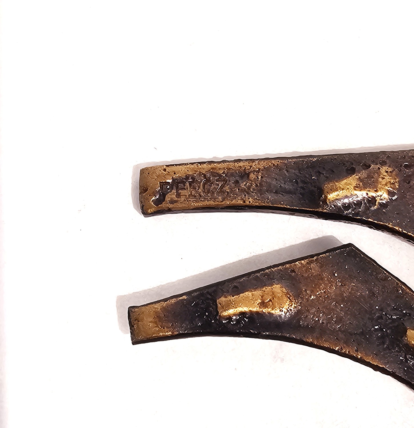 Patinázott bronz. Méret: 19x21cm. Jelezve, beütő: Percz