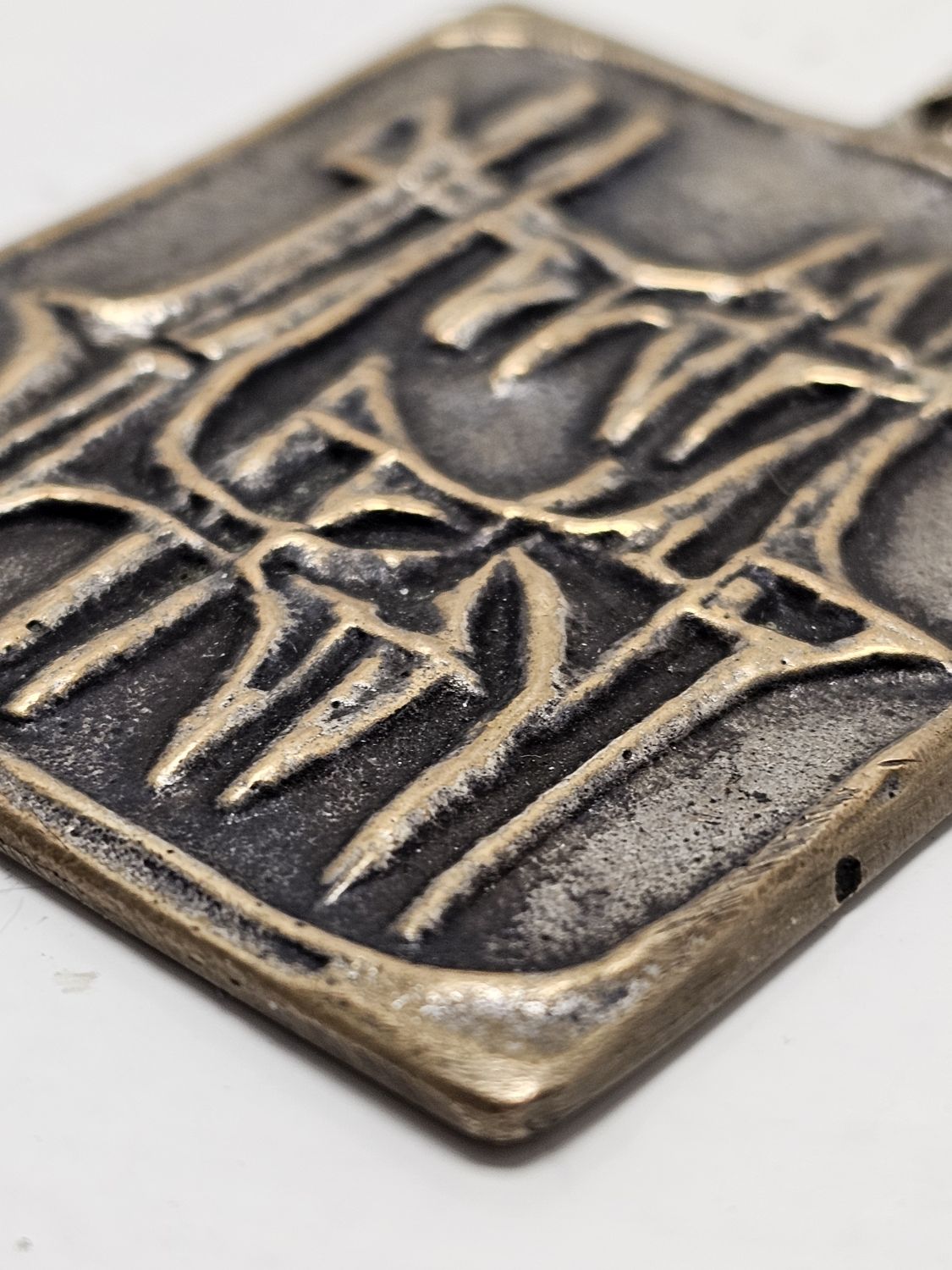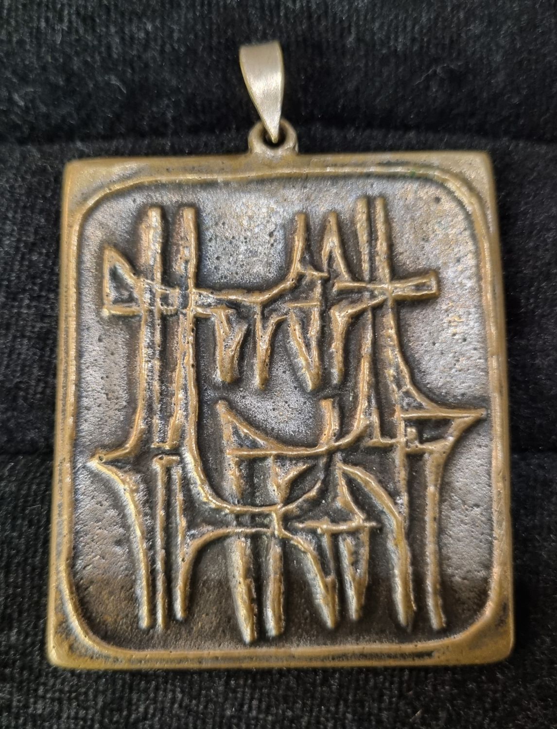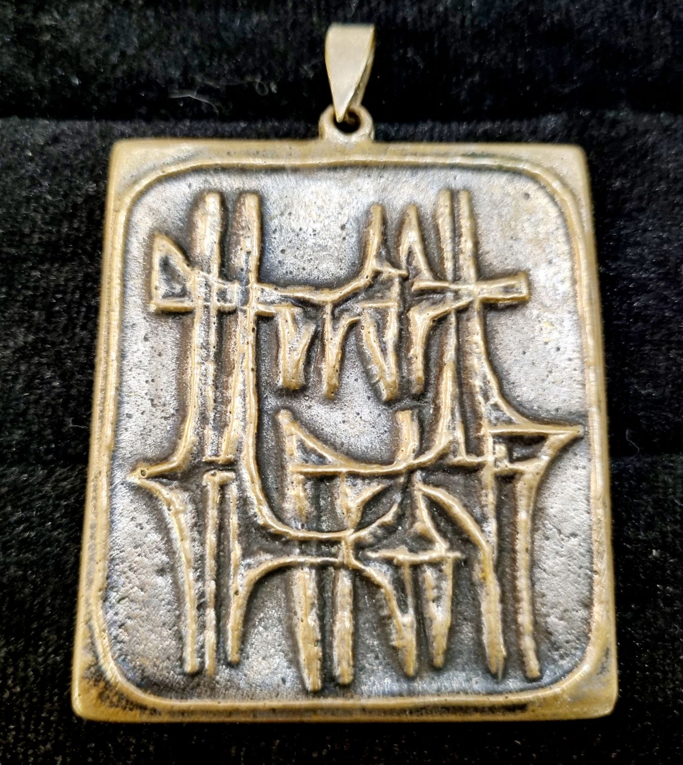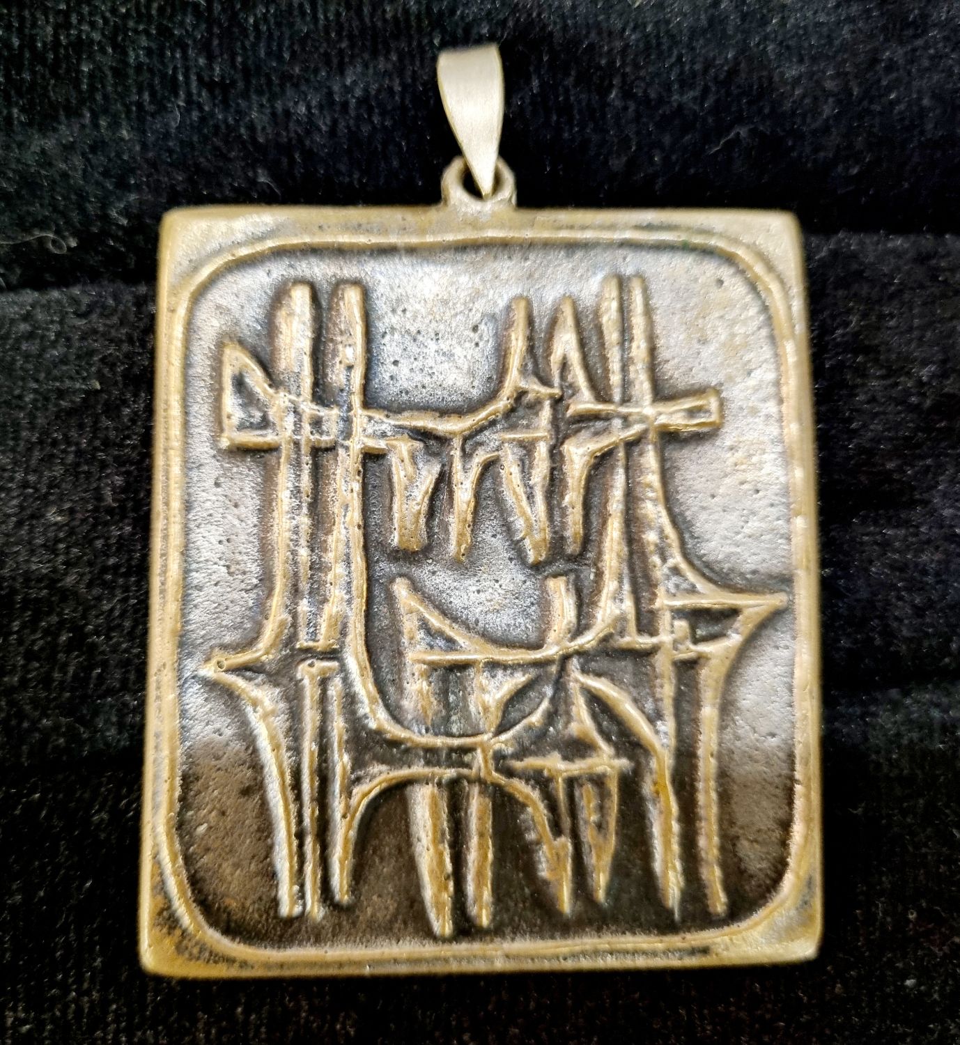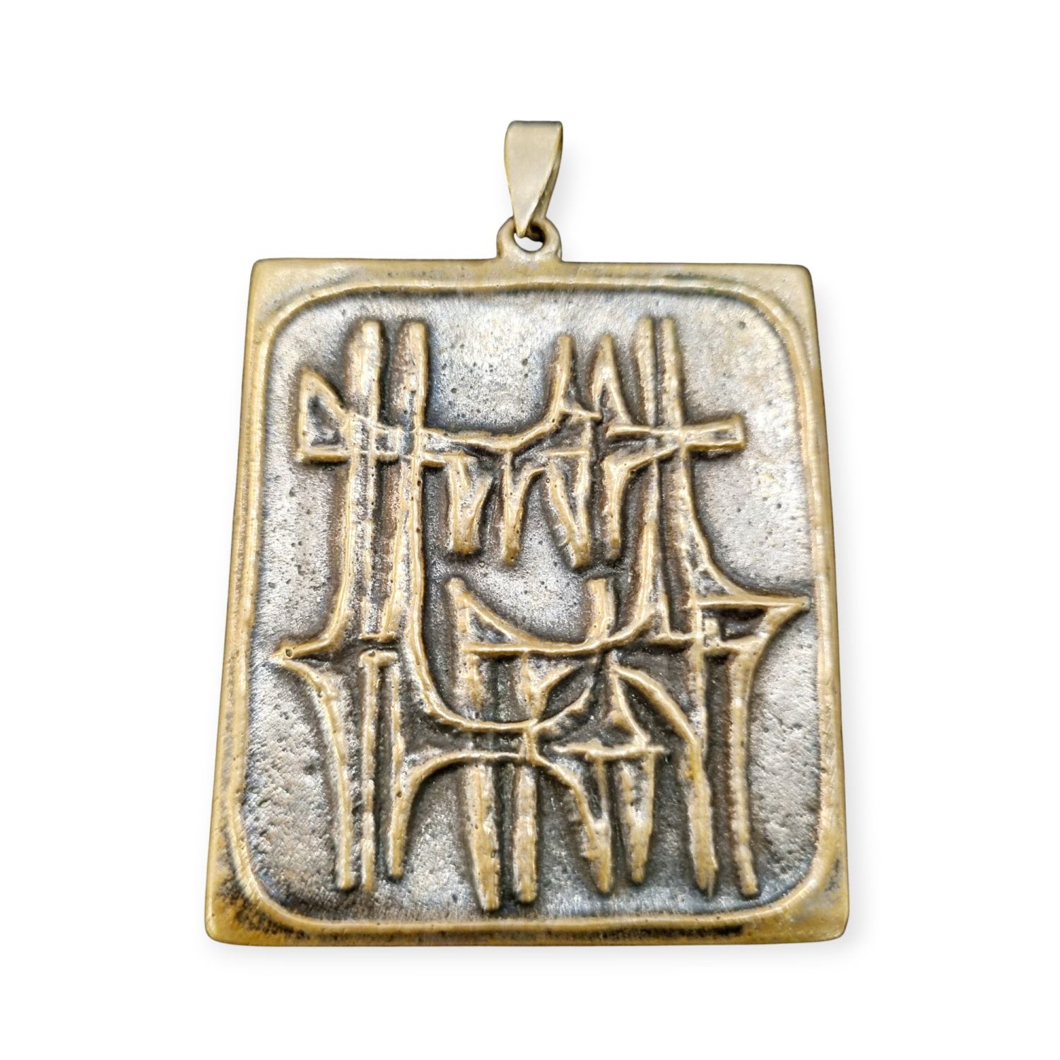 Percz János ötvösművész alkotása az 1960-as évekből.Korának megfelelő,patináns, nagyon szép állapotban lévő design ékszer.Jelzetlen. Méretei:5x4x1 cm