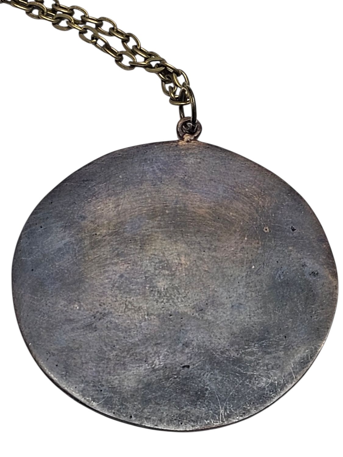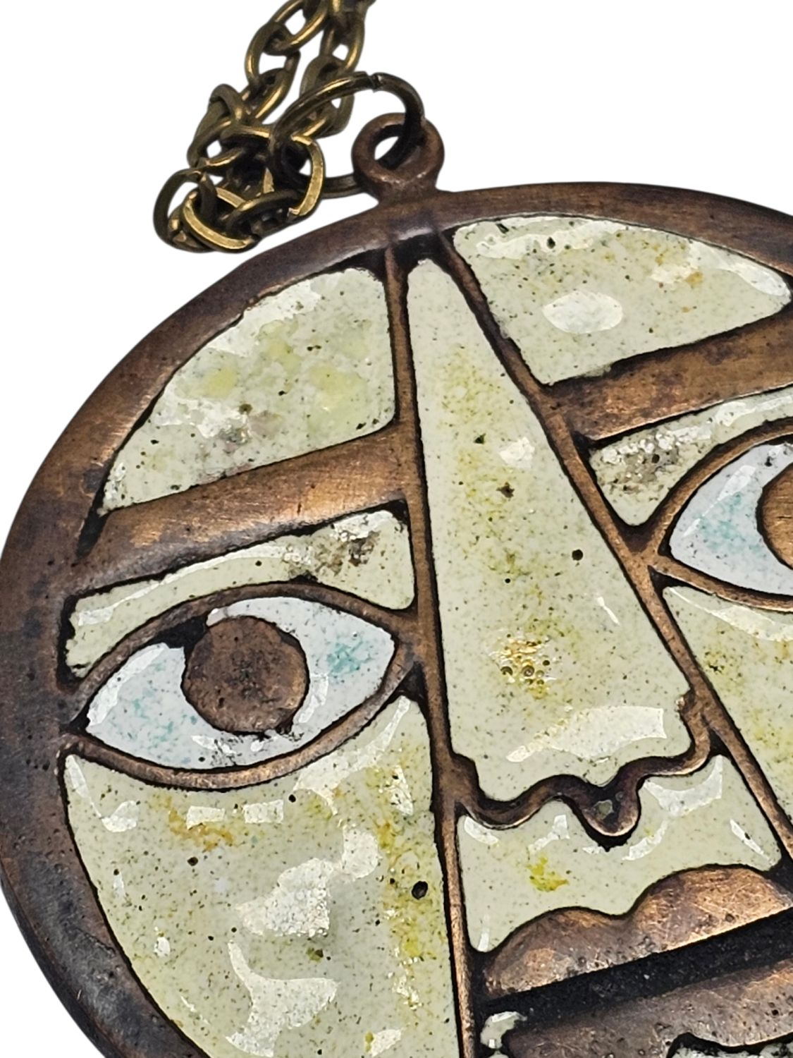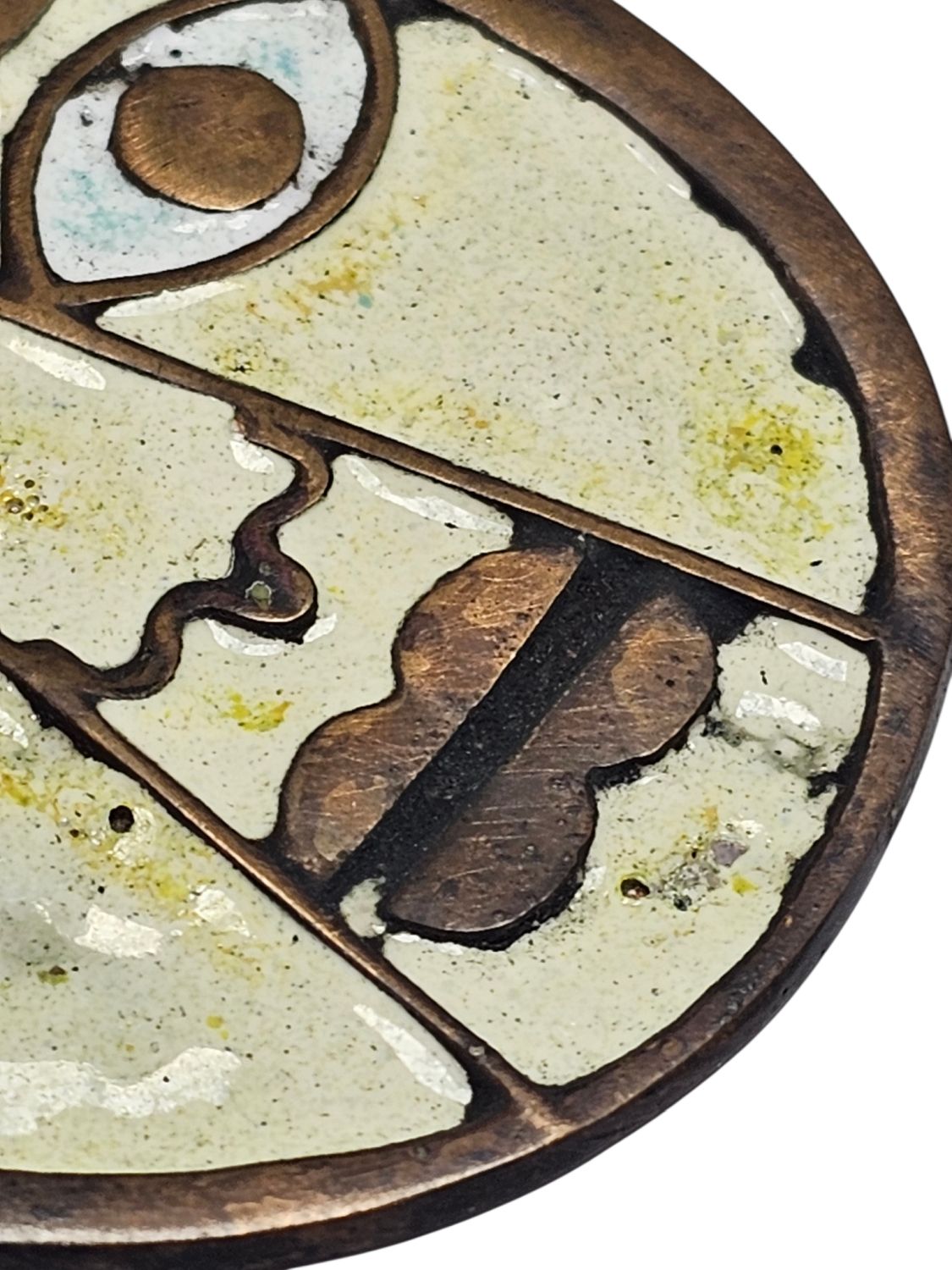 Percz János tervezőművész alkotása a face-medál. Antik stílusú divatékszer amely fém és fehér zománcal van kitöltve.1970s évek. Jelzés nélküli.