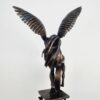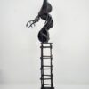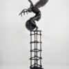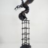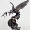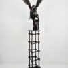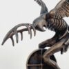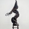 A mai magyar kortárs szobrászművészet egyik egyedi, 2007-ben készült bronz alkotása. A szobor figurája, a sámán az ázsiai, kereszténységen kívüli népek és vallások papja, aki valójában a varázsló szerepét töltötte be a közösségben. 60x26x20. Új, hibátlan állapot. Jelzés nélkül. 10 kg.