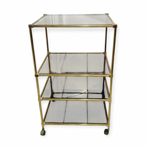 Vintage stílusú, rézkeretes 4 polcos bortartó kocsi karcmentes füstüveggel kombinálva.