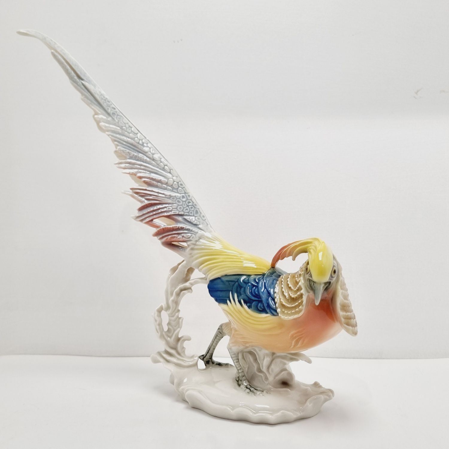 Karl Ens átlal tervezett német aranyfácán, un.ENS porcelán az 1920-as évekből. Finom színvilág, egyéni formatervezés, részletgazdag kivitelezés jellemzi. Az alján ENS jelzés. Hibátlan, vitrin állapotú gyűjtemény darab.