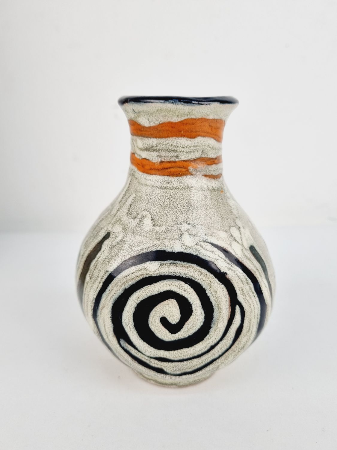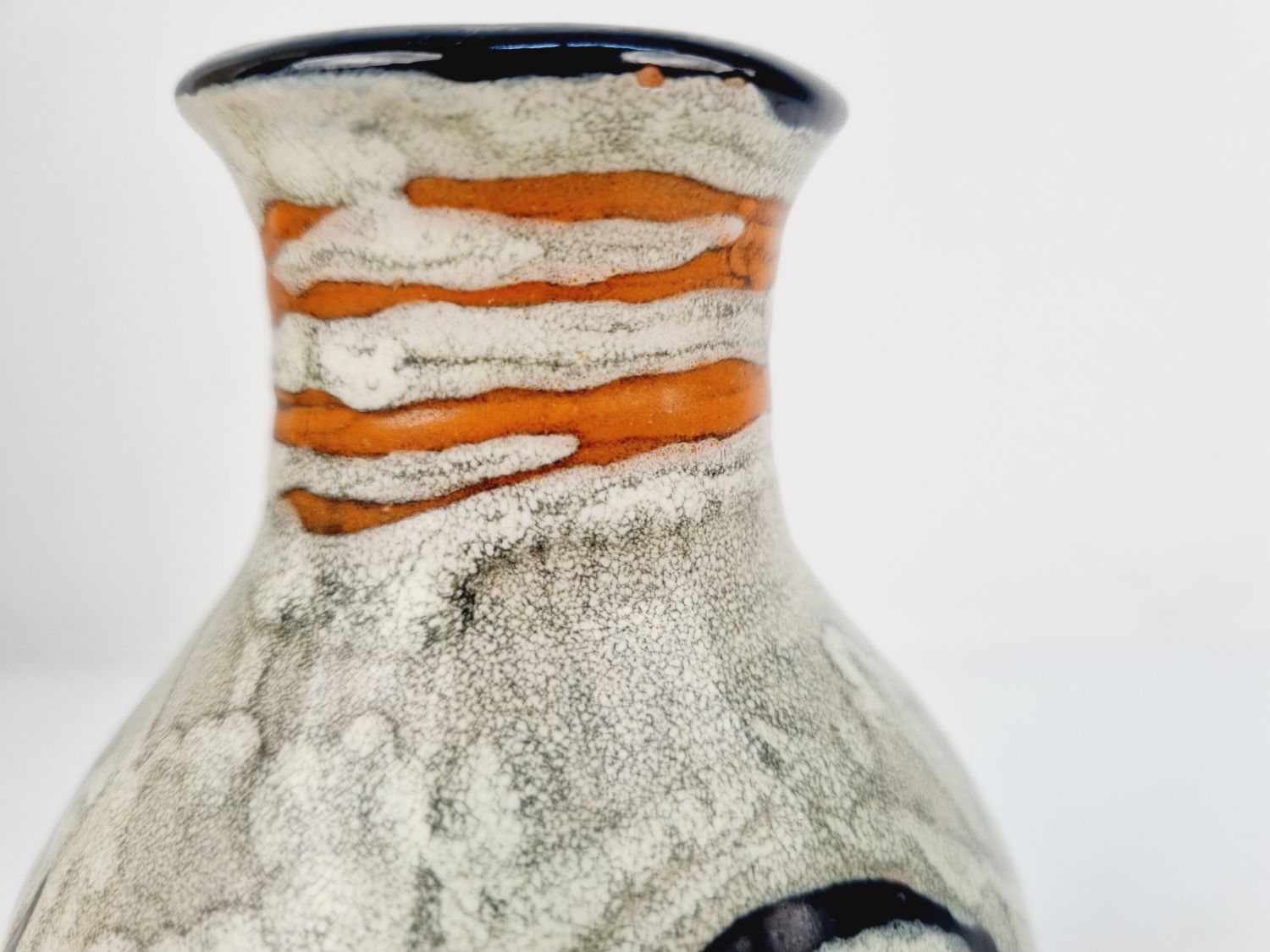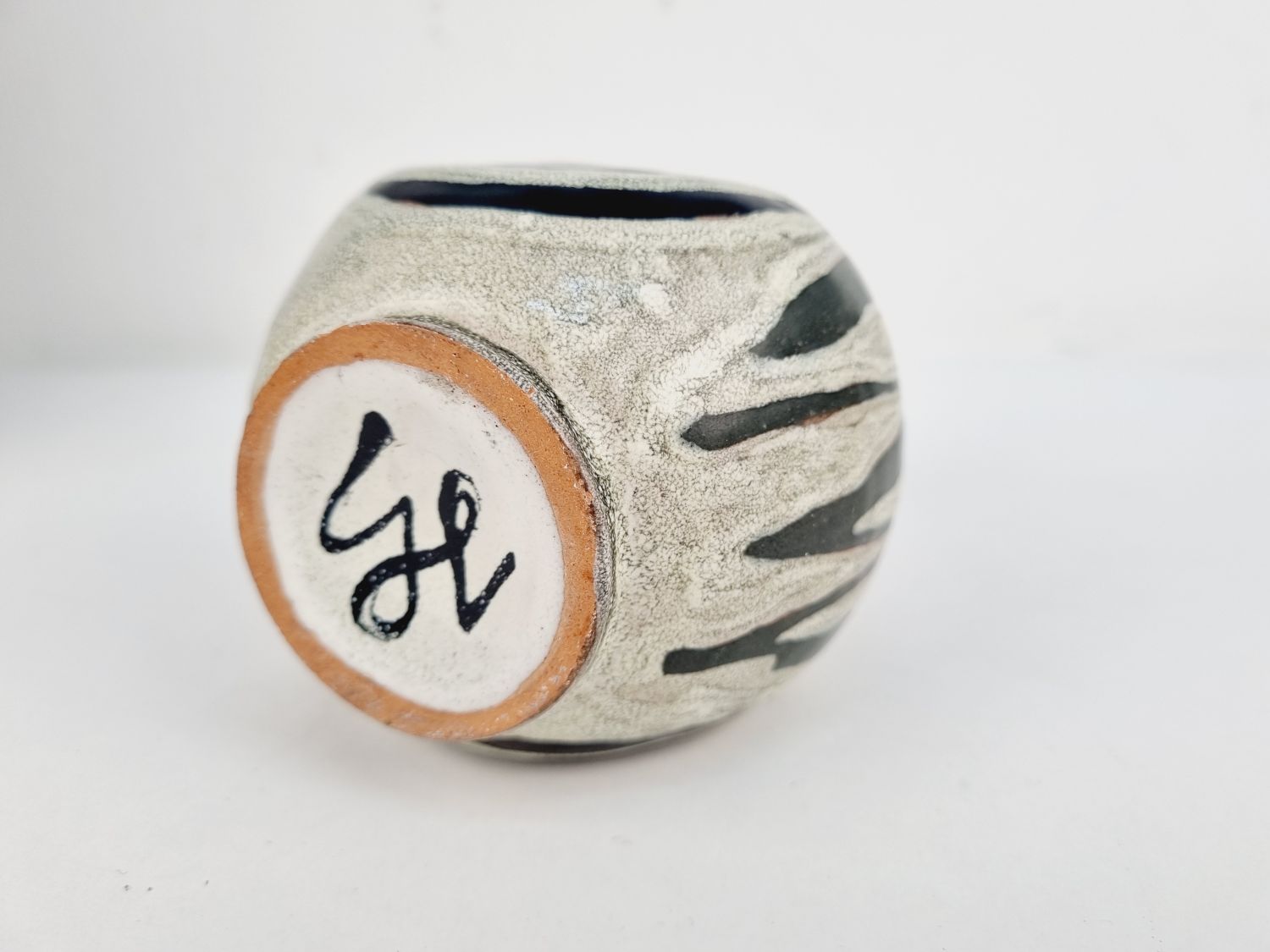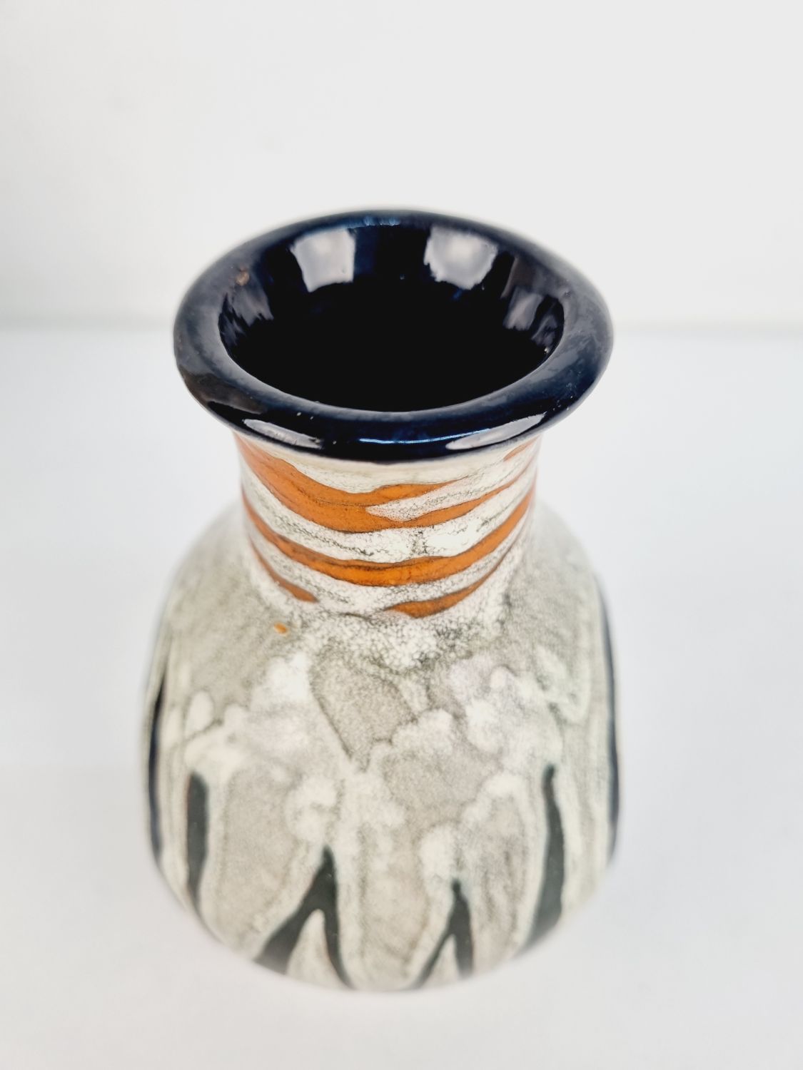 Gorka Lívia kerámia vázája az 1970-es évekből. Az alján jelzett GL.Erőteljes, plasztikai hatású színvilága, különleges formavilága teszik különlegessé. Méretei: 12x9x9 cm