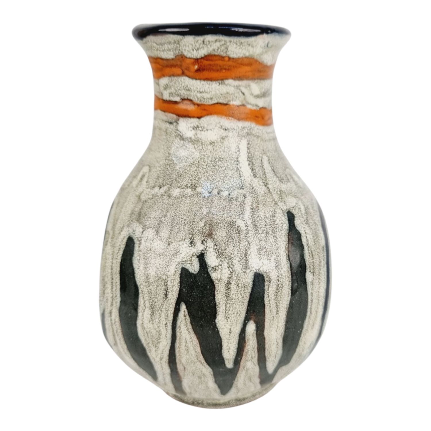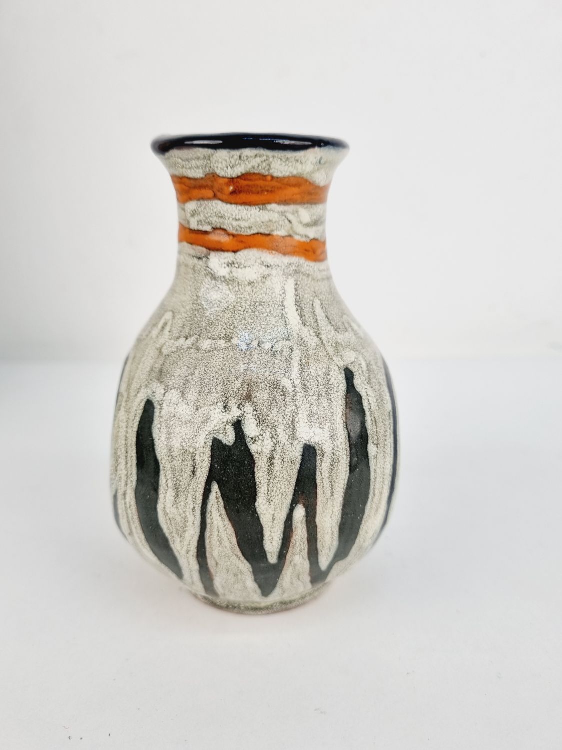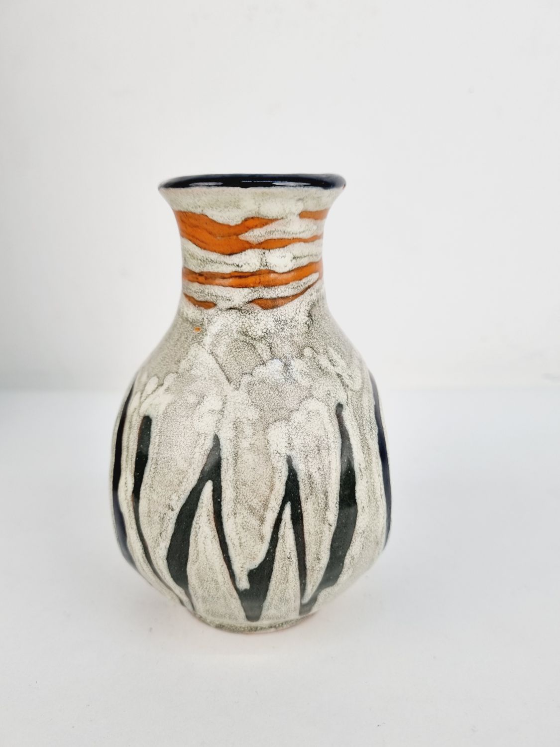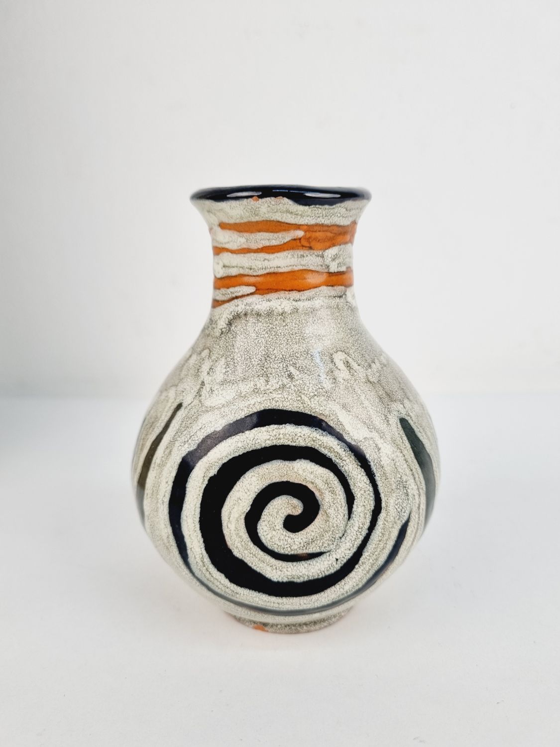 Gorka Lívia kerámia vázája az 1970-es évekből. Az alján jelzett GL.Erőteljes, plasztikai hatású színvilága, különleges formavilága teszik különlegessé. Méretei: 12x9x9 cm