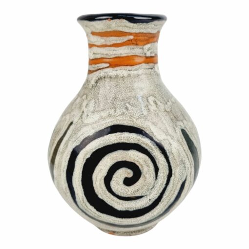 Gorka Lívia kerámia vázája az 1970-es évekből. Az alján jelzett GL.Erőteljes, plasztikai hatású színvilága, különleges formavilága teszik különlegessé. Méretei: 12x9x9 cm