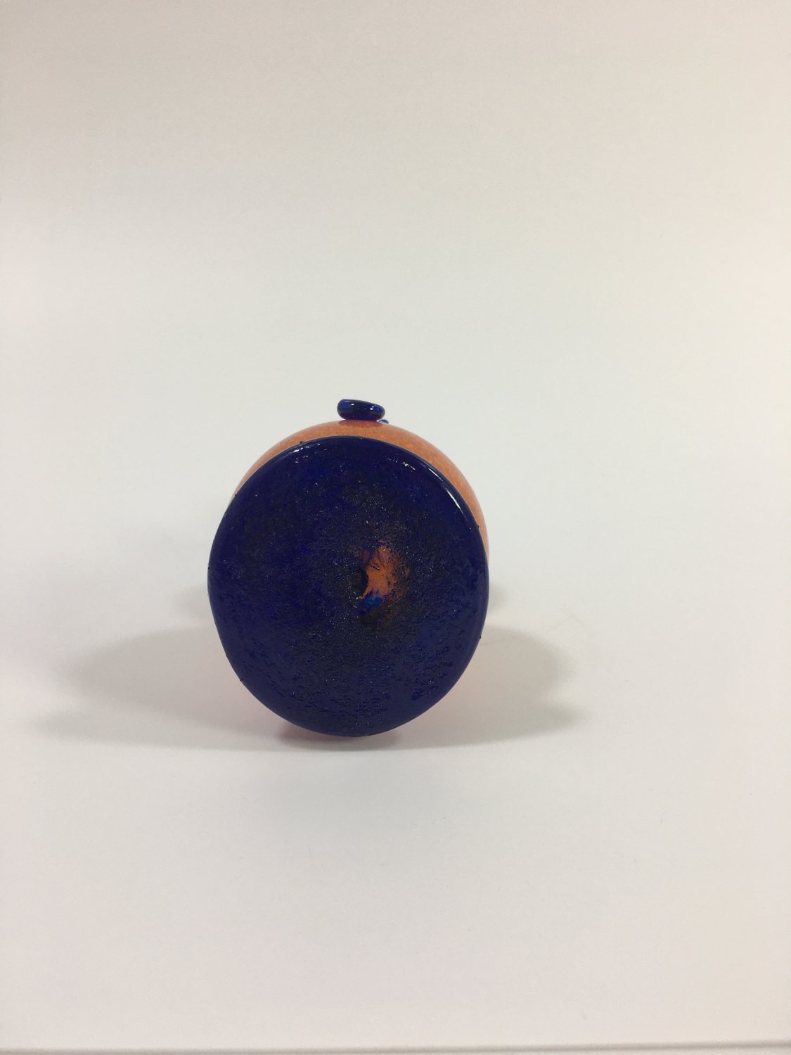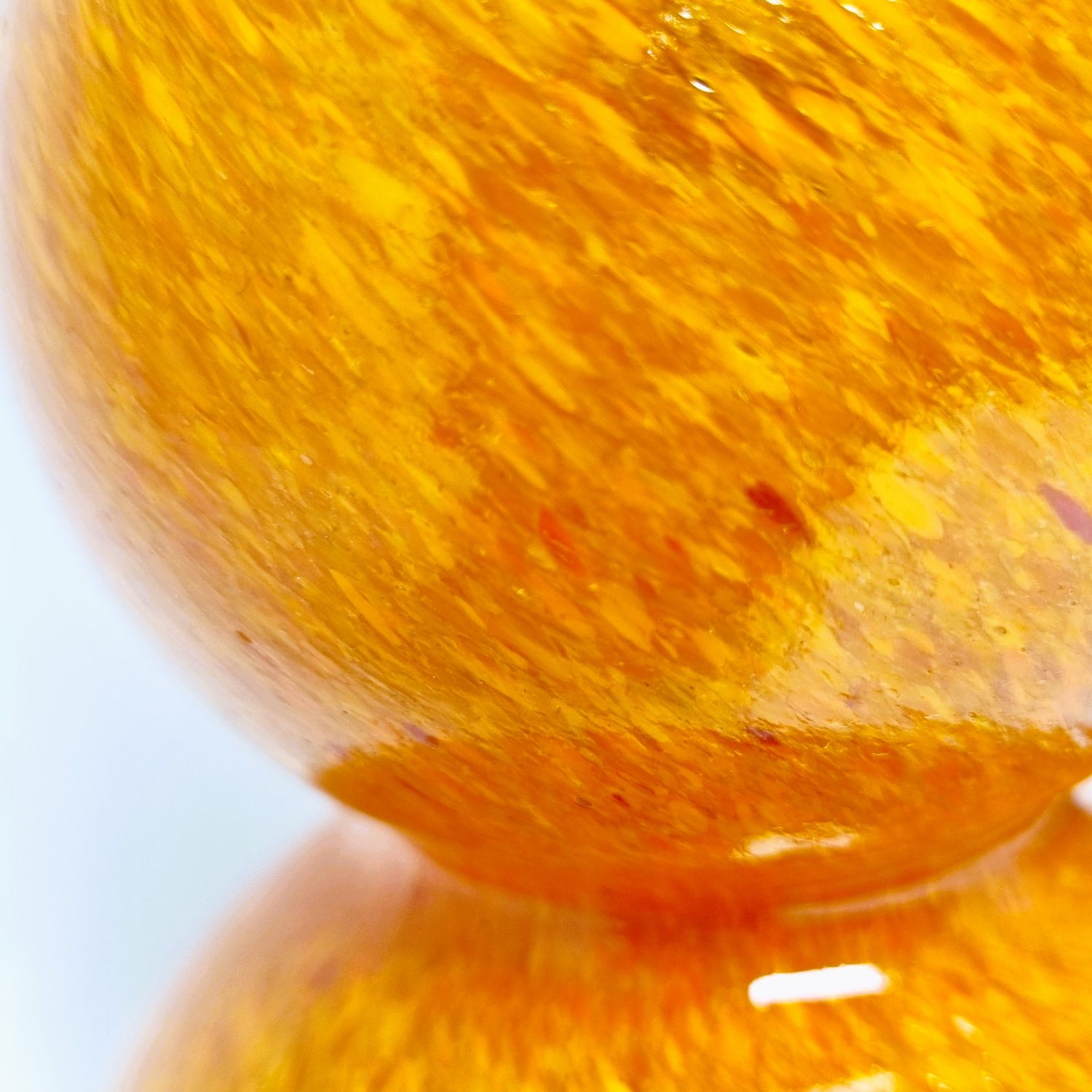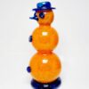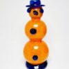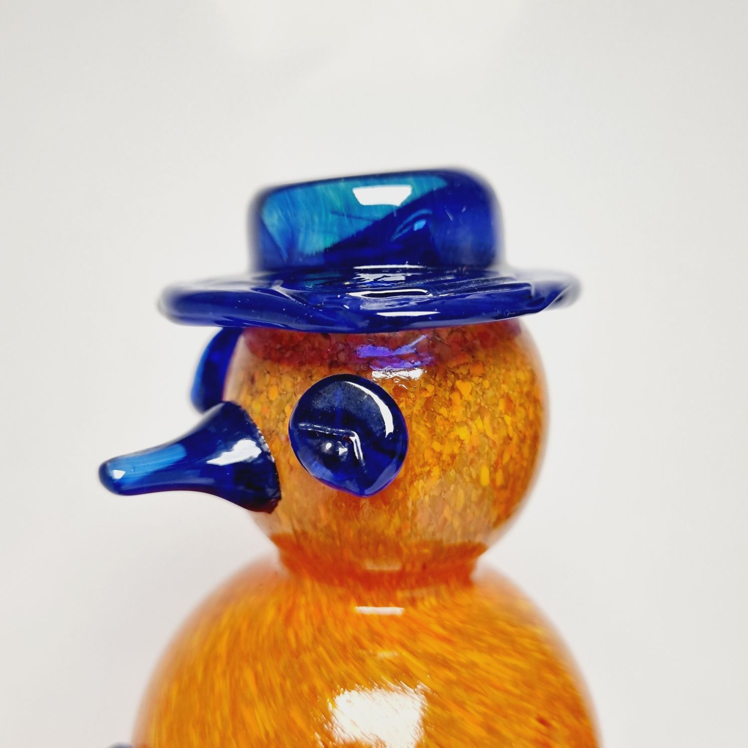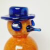 Üveg hóember figura, kék és narancssárga színben, az 1970-es évekből. Izgalmas iparművészeti tárgy, hibátlan állapotban.
